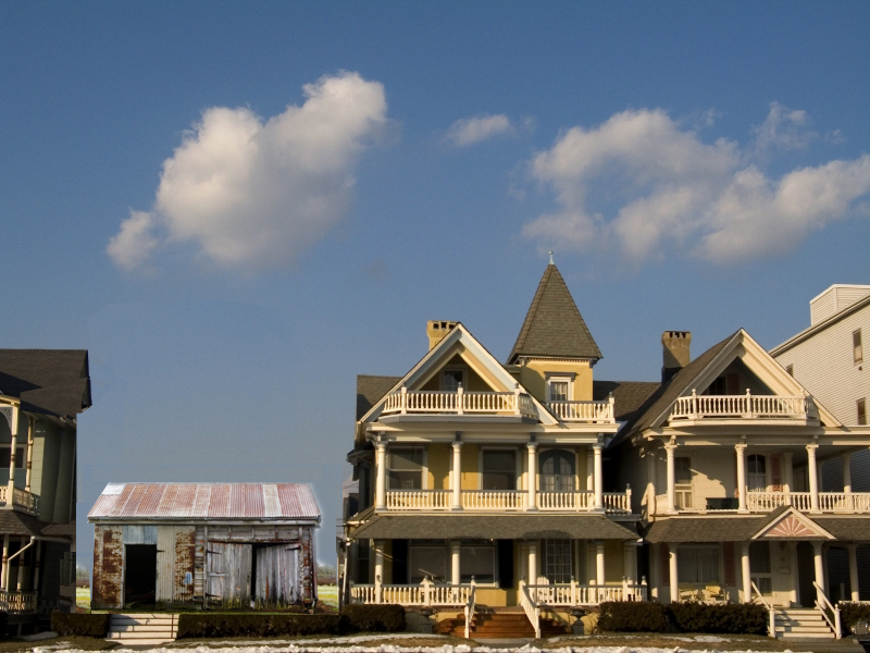 ConceptOpportunity cost  What's wrong with this picture?  Most of the homes on this lakefront are expensive and built close to each other, so it's likely that the lakefront lots are highly valued.  This, in turn, suggests that the opportunity cost of living in the shack is high.  We rarely see shacks on expensive lots because the owners usually conclude that they'd do better by selling their property and buying a nicer house on a less desirable lot.  (Click on the photo to download a high resolution version of this image.)