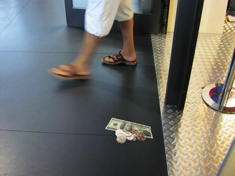Concepts:  There's no such thing as a free lunch, incentives, equilibrium.  What's Wrong with this Picture?  According to a popular economist joke, two economists are walking down the street when one sees a dollar on the sidewalk and says so.  "Obviously not," says the other.  "If there were, someone would have picked it up!"   Though the joke intends to mock economists, it's rare to find dollars on the ground because, well, other people have already picked them up.  (Note:  Click on the picture to download a high resolution version of the image.)