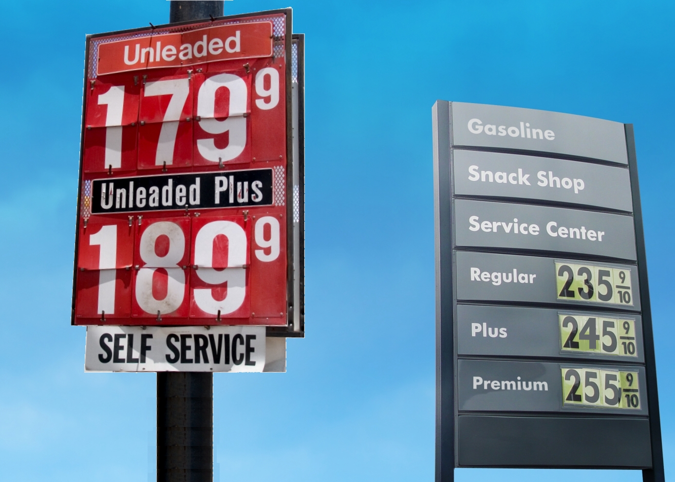 Concepts:  Equilibrium, law of one price.  What's wrong with this picture?   The more expensive gas station probably won't get many customers and will be forced to lower its prices.  The Law of One Price says that identical goods in efficient markets must have only one price in equilibrium.  (Note:  Click on the picture to download a high resolution version of the image.)