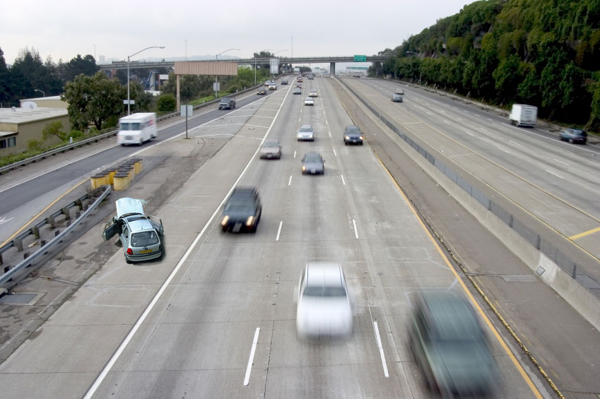 Concepts:  Externalities, opportunity cost  What's wrong with this picture?  Freeway accidents, even if they're off on the side of the road, usually cause traffic jams.  These jams occur because drivers don't take the external cost of their actions into account when they slow down to take a look.  For example, if a driver slows to take a two-second look at an accident, it costs that driver just two seconds of time.  But that one look delays everyone in the lane behind him by two seconds as well.  If there are 1,000 people who are held up in the lane behind the driver, the external cost to society of that one driver's look is about 33 minutes.   (Note:  Click on the picture to download a high resolution version of the image.)