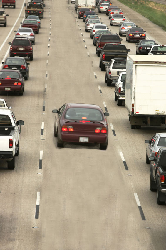 Concepts:  incentives, equilibrium, efficiency   What's wrong with this picture?   Equilibrium is defined as a state in which there is no tendency to change.  In economics, this usually occurs when everyone is doing the best he or she can.  The lanes in this picture aren't in equilibrium because some drivers could do better by moving into the relatively empty lane.  Note that achieving equilibrium -- with cars distributed more evenly among the lanes -- would promote efficiency in that it would help all drivers reach their destinations faster.  In a similar way, the efforts of producers and consumers to promote their interests can result in an efficient market outcome.  (Note:  Click on the photo to view a higher-resolution version of this image.)